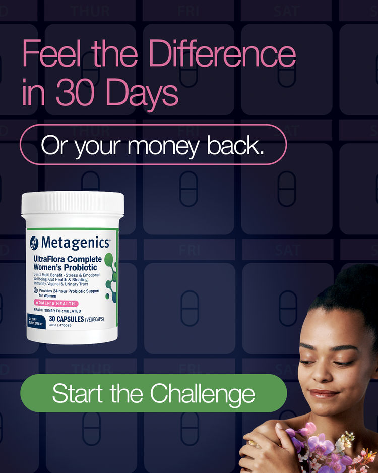 At Metagenics, we are committed to the quality and effectiveness of our products. That’s why we’re offering an exclusive 30-day money-back guarantee on our UltraFlora Complete Women's Probiotic.