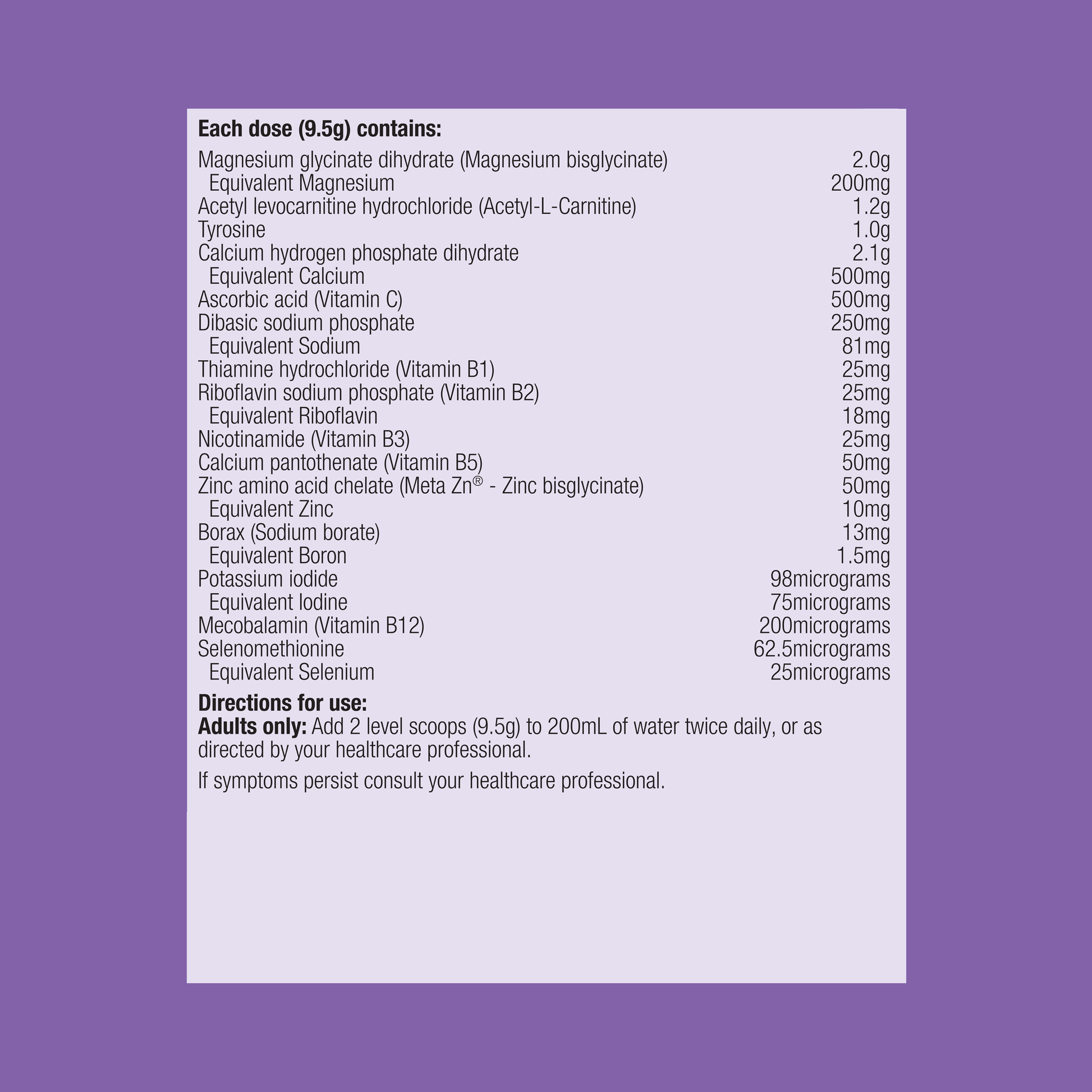 Each dose (9.5g) contains