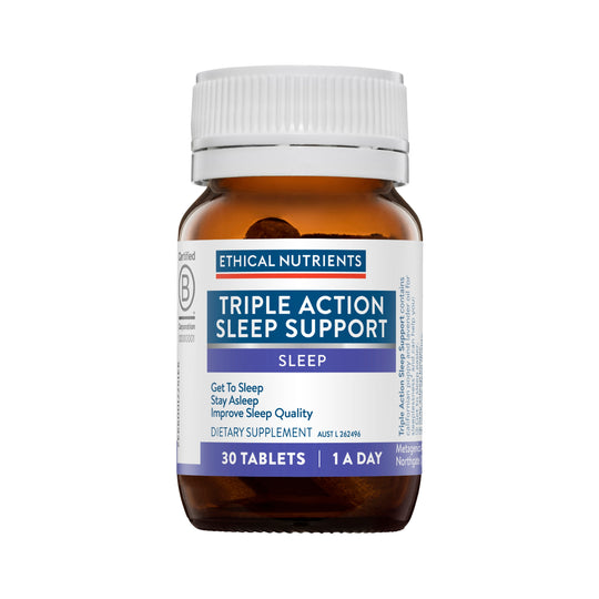 Triple Action Sleep Support helps you go to sleep, stay asleep & improve sleep quality. It contains zizyphus, traditionally used in Chinese medicine to calm the mind, and Californian poppy, traditionally used in Western Herbal Medicine to relieve pain.