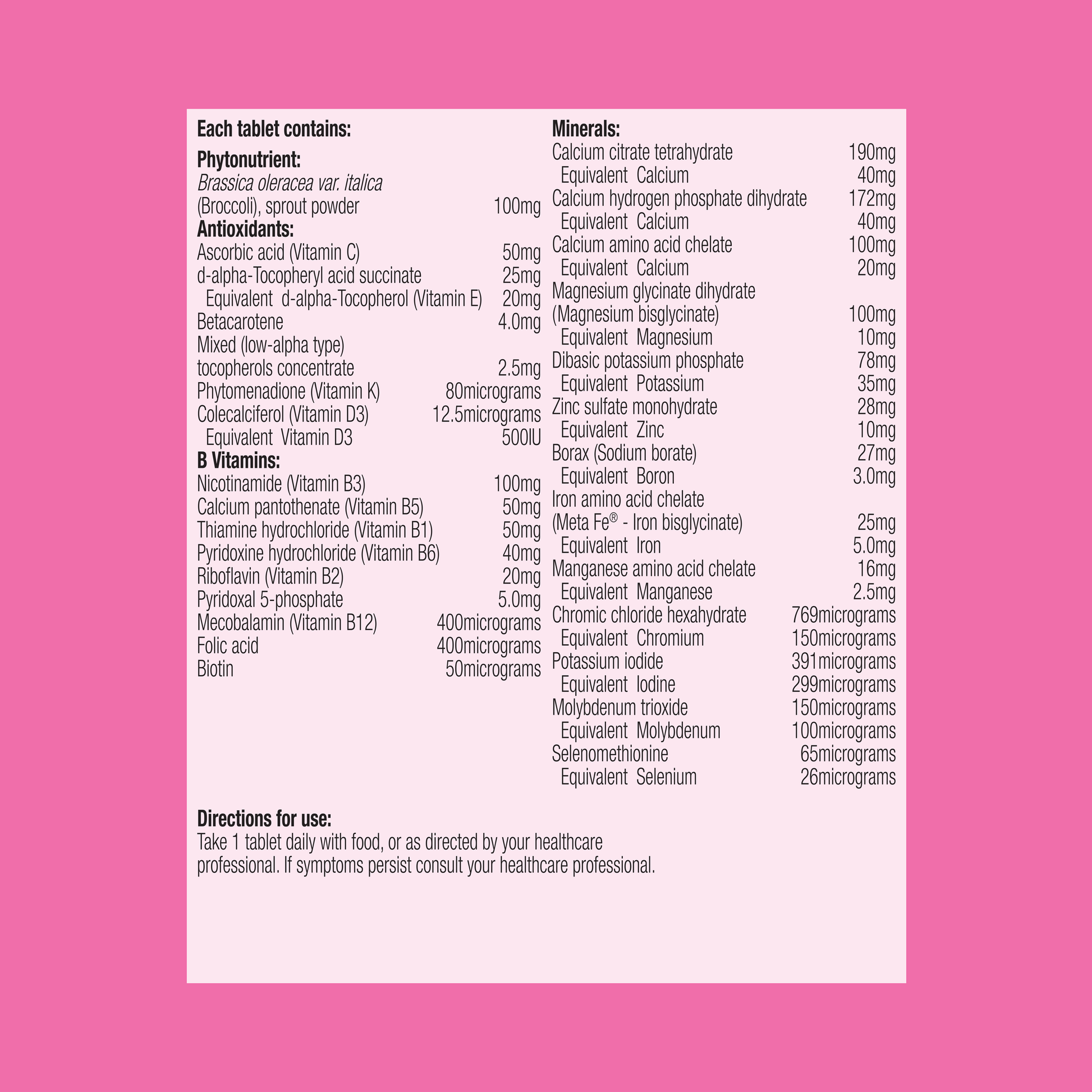 • Women’s full spectrum multivitamin and mineral with antioxidants