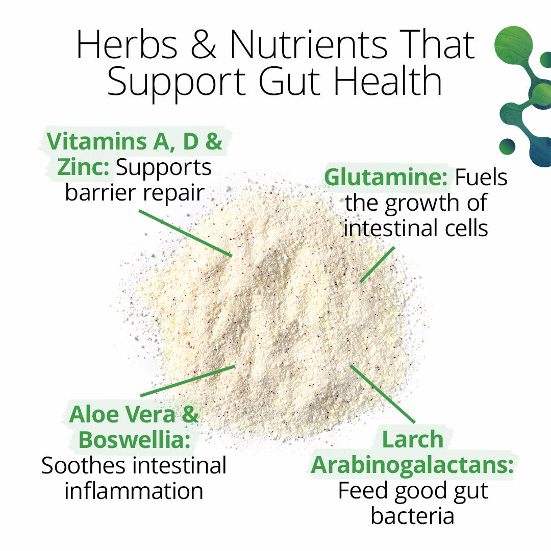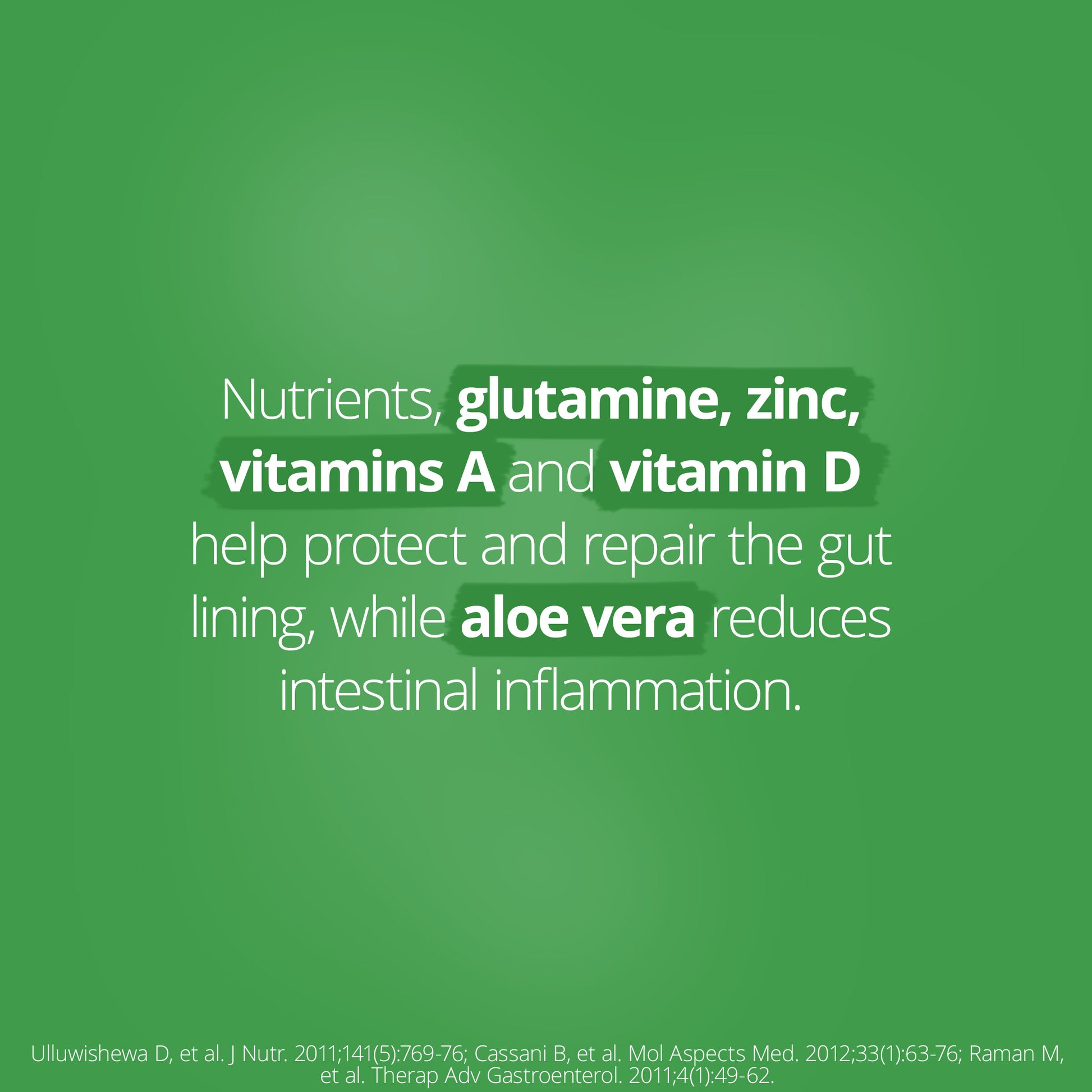 BosPure®, a proprietary extract of the traditional Ayurvedic herb boswellia, relieves mild gastrointestinal tract inflammation and reduces gut pain. Aloe vera, used as a demulcent in traditional Western herbal medicine, soothes and alleviates digestive discomfort. Additionally, vitamins A and D contribute to healthy gastrointestinal immune function, while larch supports healthy digestion.