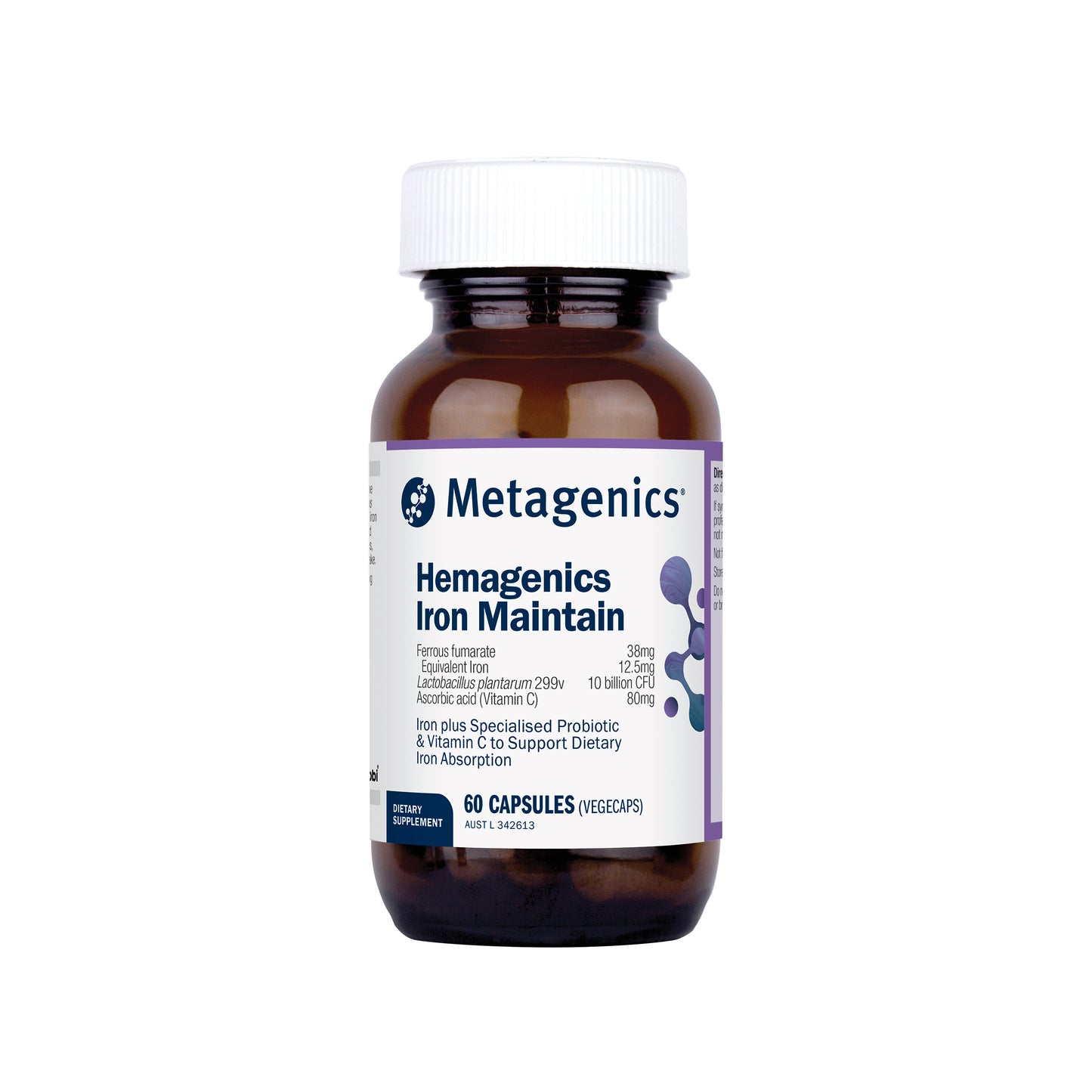 Hemagenics Iron Maintain is your go-to supplement for supporting healthy energy levels. This advanced formula combines iron with the extensively researched probiotic strain Lactobacillus plantarum 299v and vitamin C to enhance iron absorption from your diet.