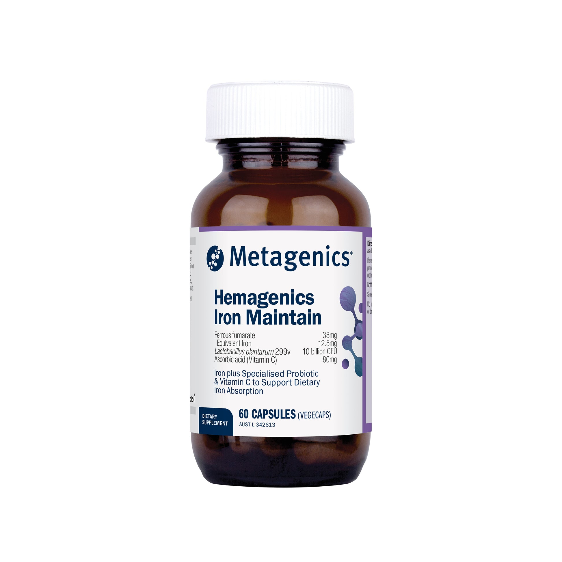 Hemagenics Iron Maintain is designed to reduce fatigue* when dietary intake is inadequate such as in groups of females, vegans, vegetarians and those with reduced meat intake. Available in a convenient one-a-day vegetable capsule, Hemagenics Iron Maintain helps combat low energy and support healthy iron levels, working to maintain iron levels without causing unwanted gastrointestinal side effects.