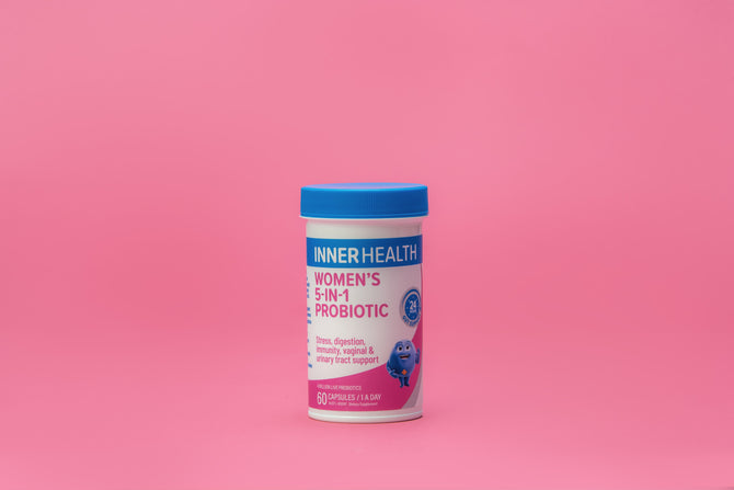 This 5-In-1 probiotic powerhouse is tailored to target women's unique health needs in just one daily capsule. Inner Health Women's 5-in-1 Probiotic is formulated to calm the mind and support a healthy stress response whilst offering healthy digestive function and regularity, reducing bloating and pain, for 24-hour gut support. This unique formulation also contains B12 and folate to maintain energy levels. Researched probiotic strains strengthen your immune system response whilst supporting urogenital health by maintaining healthy vaginal flora and pH, as well as supporting oestrogen hormone levels.