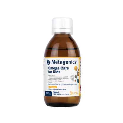 Omega Care for Kids has been designed to provide a pleasant tasting natural source of omega-3 fatty acids for children, to support healthy growth and development. Omega-3 EPA and DHA fatty acids play a crucial role in the health of various bodily systems including brain, eyes and nervous system.