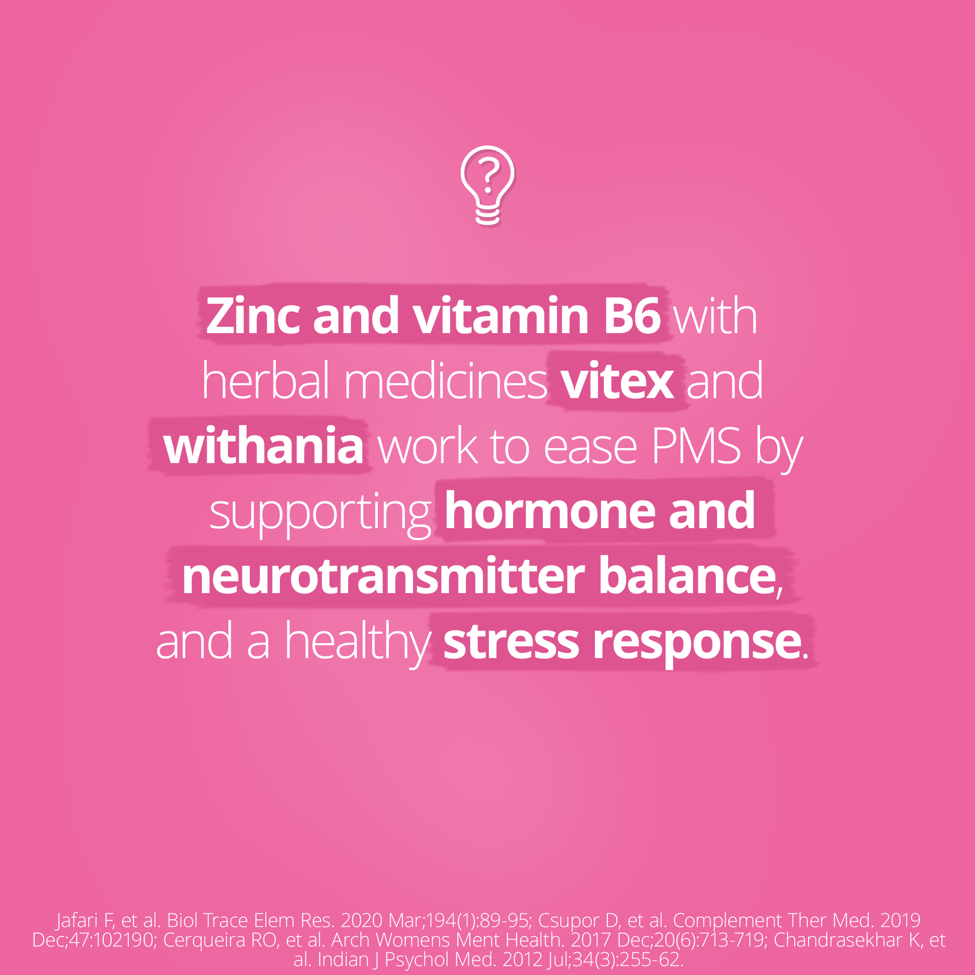 PMS Ease assists in the relief of premenstrual symptoms such as irritability, mood swings, tiredness and breast tenderness. PMS Ease contains and extract equivalent to 2.0 grams of Vitex angus-castus fruit which assist in the regulation of the menstrual cycle and healthy hormonal balance.