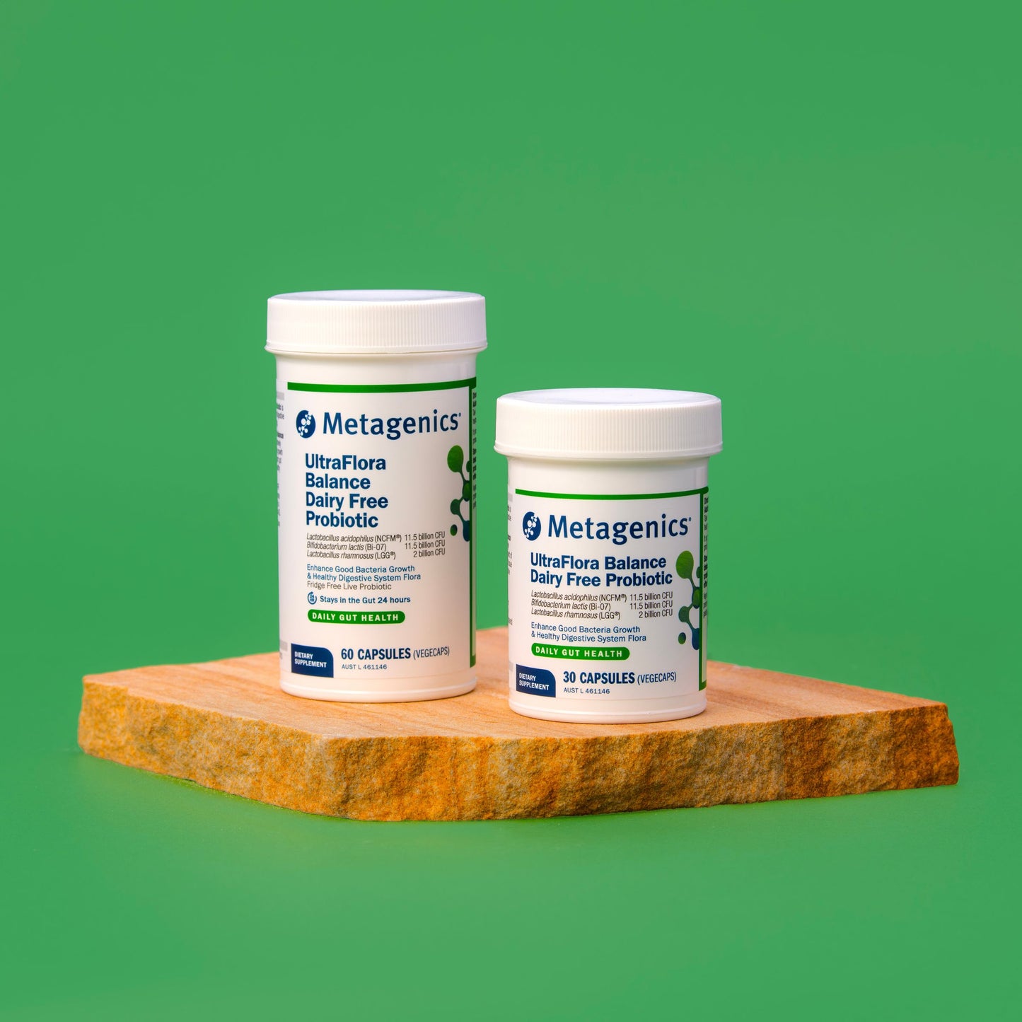 UltraFlora Balance Dairy Free is designed to support digestive health and maintain general wellbeing. Scientifically formulated, UltraFlora Balance Dairy Free contains extensively researched probiotics including Lactobacillus acidophilus (NCFM®) 11.5 billion CFU (organisms), Bifidobacterium lactis (Bi-07) 11.5 billion CFU (organisms) and Lactobacillus rhamnosus (LGG®) 2 billion CFU (organisms) to enhance the growth of beneficial intestinal bacteria.